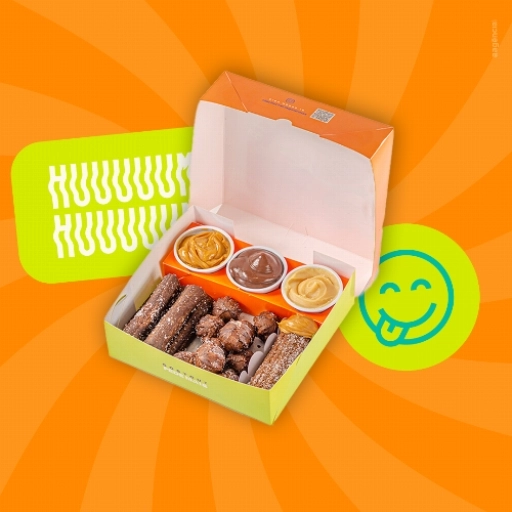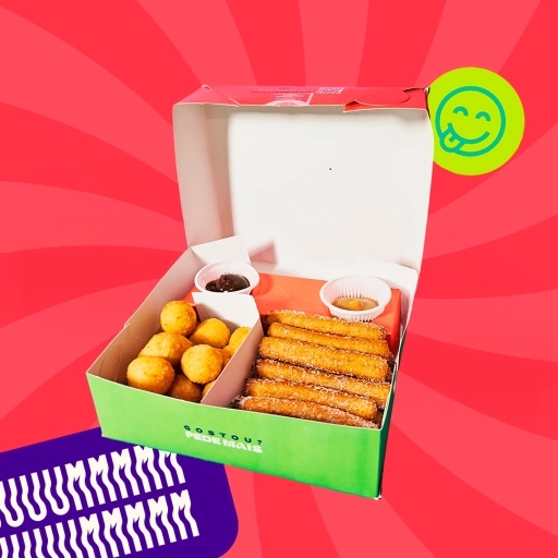 10 Mini churros espanhol + 3 mini churros + 3 tipos de recheios