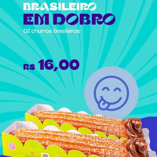 Churros brasileiro + 1 recheio + 1 cobertura + 2 toppings