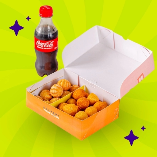 20 salgados + 10 bombinhas de churros + 1 refrigerante pet