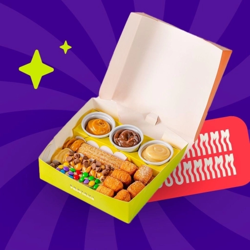 15 Quadradinhos de churros + 1 mini churros brasileiro + 2 mini churros goumert + 3 recheios