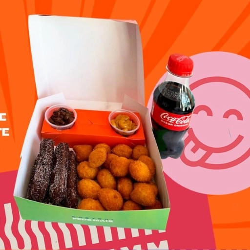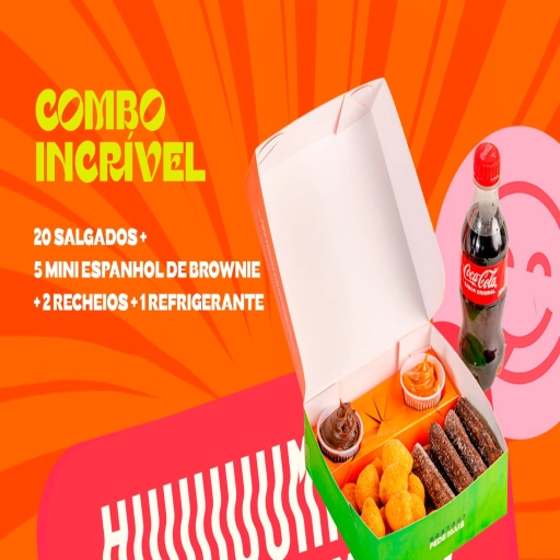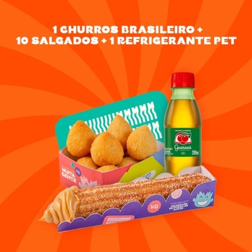 20 salgados + 10 bombinhas de churros + 1 refrigerante pet